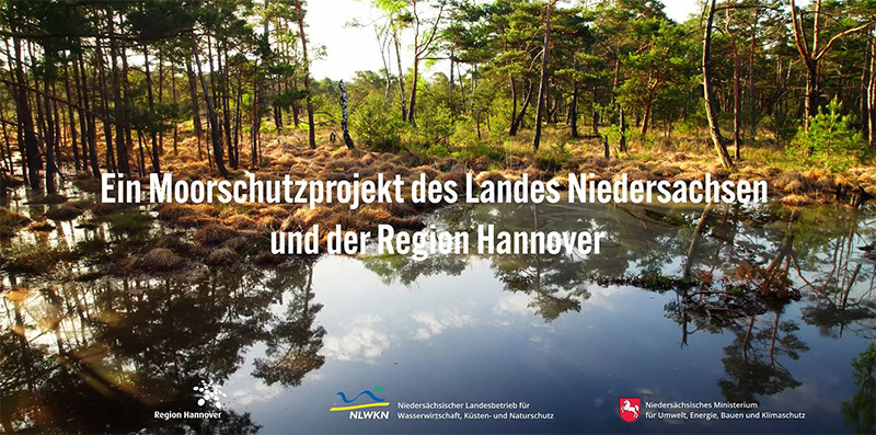 Der NLWKN und die Region Hannover arbeiten seit 2012 gemeinsam daran, vier Moore im Umland Hannovers zu renaturieren. Umfangreichen Flächenankäufe, Voruntersuchungen, detaillierte Planungen und vier Planfeststellungsverfahren sind abgeschlossen. Seit 2021 wird gebaut. Ziel ist die Wiederherstellung naturnaher Moorwasserstände im Bissendorfer Moor, Otterhagener Moor, Schwarzen Moor und Helstorfer Moor, damit Torfmoose wieder wachsen können. Trotz langjähriger Entwässerung gehören die vier Hochmoore zu den wertvollsten in Niedersachsen. Sie beheimaten seltene Lebensräume von Tier- und Pflanzenarten, die auch EU-rechtlich geschützt sind. Deshalb fördert die Europäische Union das LIFE+-Projekt mit 50% der Kosten. Im gesamten Projektgebiet von ca. 2.243 ha werden noch bis 2027 abschnittsweise umfangreiche Baumaßnahmen zum Regenwasserrückhalt durchgeführt. Dazu gehören Grabenverschlüsse und der Bau von Moordämmen – teils mit schwerem Gerät. Die ersten Erfolge sind bereits deutlich sicht- und messbar. Nicht nur die seltenen und geschützten Lebensräume und Arten werden davon profitieren - das Projekt leistet auch einen erheblichen Beitrag zum Klimaschutz.