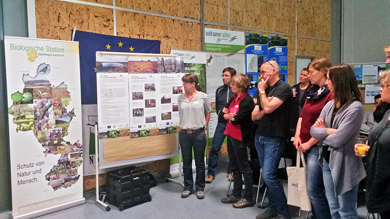 Projektmanagerin Susanne Brosch vom NLWKN folgte der Einladung zum fachlichen Austausch rund um EU-LIFE-Projekte nach Brandenburg. Frau Brosch war mit einer Posterpräsentation (siehe Foto unten) angereist und stellte diese unter einem speziellen Programmpunkt interessierten Teilnehmerinnen und Teilnehmern vor.