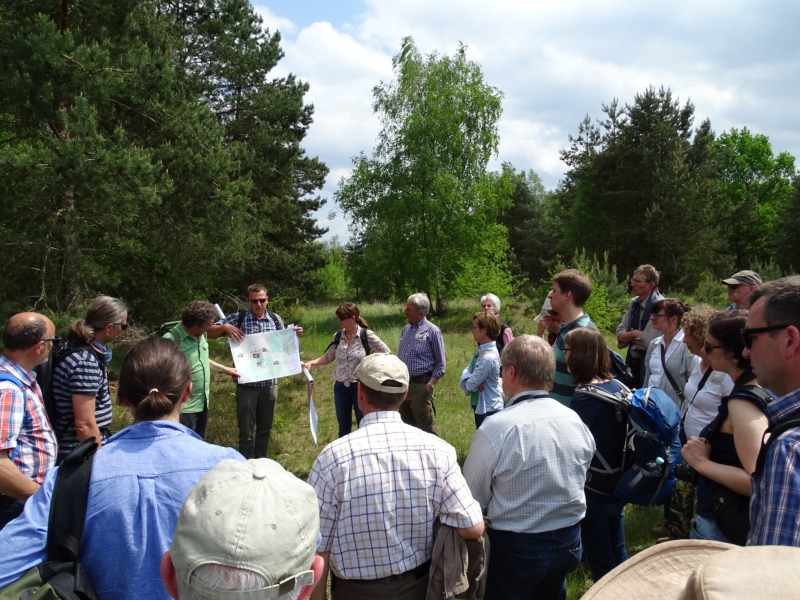 Das LIFE+ Projekt „Hannoversche Moorgeest“ (Projektmanagement Frau Brosch, NLWKN) präsentierte sich anlässlich der Fachtagung der „Alfred Toepfer Akademie für Naturschutz“ (NNA) „Moorschutz in Niedersachsen – Ein Erfahrungsaustausch“ vom 17.-18.Mai 2017 sowohl mit einem eigenen Vortrag zu Zielen und Inhalten des Projektes als auch mit einer Exkursion am zweiten Veranstaltungstag. Ca. 50 Teilnehmer aus ganz Norddeutschland und den Niederlanden reisten aus Schneverdingen an und besuchten das Bissendorfer und das Otternhagener Moor. Durch die Mitglieder des Projektteams aus den Geschäftsbereichen Naturschutz und Wasserwirtschaft des NLWKN sowie vom Projektpartner Region Hannover wurden sie fachkundig und umfassend über die geplanten Moor-Revitalisierungsmaßnahmen informiert.