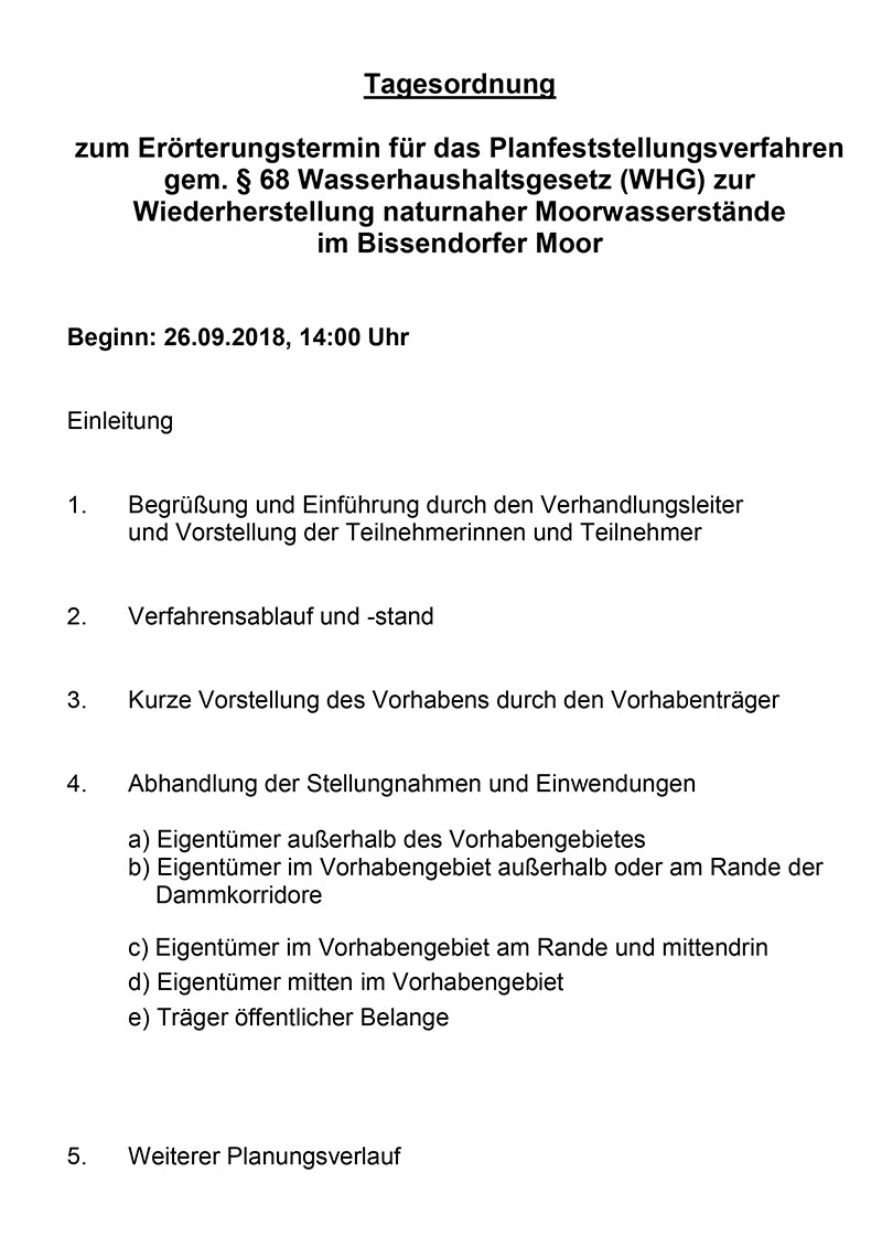September 2018 – Erörterungstermin für das Planfeststellungsverfahren „Bissendorfer Moor“
