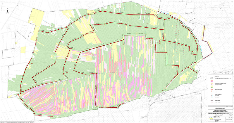 Es ist das dritte Planfeststellungsverfahren im Rahmen des LIFE-Projektes, ein weiteres für das Helstorfer Moor wird noch folgen. Es schafft die rechtlichen Voraussetzungen, damit die wasserbaulichen Maßnahmen zur Erhaltung und Verbesserung des wertvollen Hochmoores umgesetzt werden können. In die fachliche Erstellung der Planung, welche vom GB II Sulingen in Abstimmung mit dem GB IV erarbeitet wurde, konnten sich Akteure vor Ort und der ehrenamtliche Naturschutz bereits vorab intensiv einbringen.