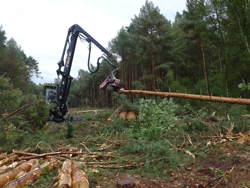 Dadurch sind seit September auch im Außenbereich des Otternhagener Moores größere Maschinen wie zum Beispiel Harvester oder Holztransporter im Einsatz. Die eigentlichen Baggerarbeiten zur Herstellung der Moordämme beginnen erst im Nachgang zur Freistellung der Arbeitstrassen.