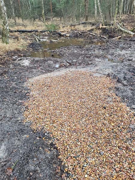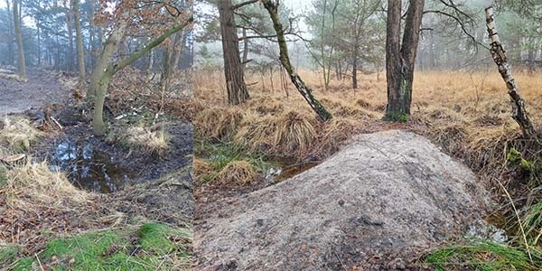 Die Maßnahmenumsetzung zur Wiederherstellung naturnaher Moorwasserstände im Schwarzen Moor ist bereits abgeschlossen. Im Schwarzen Moor wurden die Entwässerungsgräben durch punktuelle Grabenverschlusspunkte verschlossen oder komplett gefüllt. Durch diese Maßnahmen werden die Gräben unwirksam gemacht und der Abfluss des Regenwassers reduziert. Die Umsetzung erfolgte von November bis Dezember 2021.