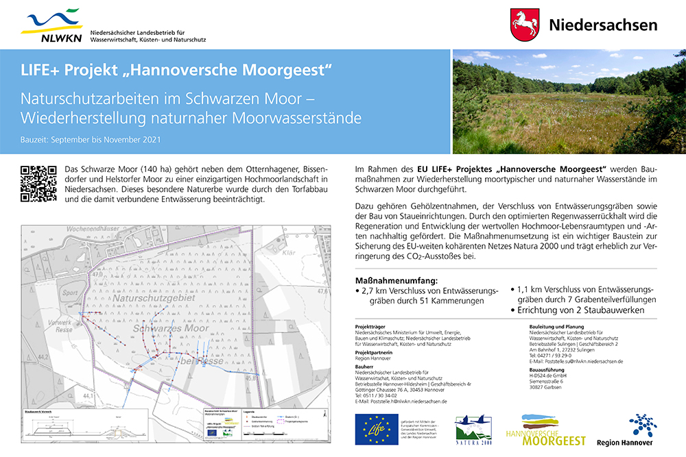 LIFE+-Projekt Hannoversche Moorgeest: Baumaßnahmen im Bauabschnitt „Schwarzes Moor“ sind abgeschlossen