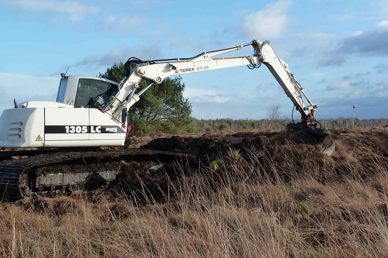 Bagger mit Moorkettenlaufwerk bei der Herstellung eines Moordammes (NSG „Weißer Graben“, Landkreis Nienburg) (Foto: J. Fahning)