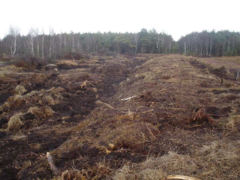 Frisch hergestellter Moordamm zum Rückhalt von Niederschlagswasser (NSG „Weißer Graben“, Landkreis Nienburg) (Foto: S. Brosch)