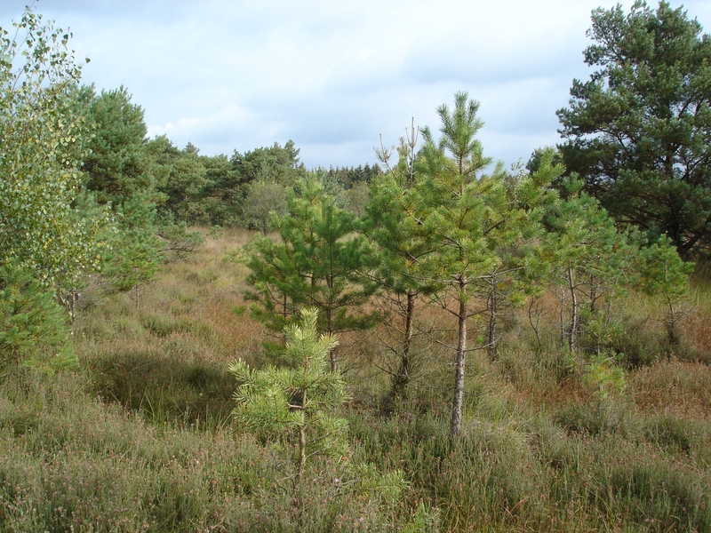 - Entnahme von aufwachsenden Gehölzen und von Kulturheidelbeeren im Moorbereich: Vor der Umsetzung der wasserbaulichen Maßnahmen ist es erforderlich, aufwachsende Gehölze zu entfernen. Dies dient unmittelbar der Verbesserung der Flächen mit dem Entwicklungsziel "natürlich baumfreies Hoch- und Übergangsmoor". Es sollen aber auch Flächen entkusselt werden, die aktuell in Teilen noch wertvolle offene Hochmoorlebensräume oder Populationen gefährdeter Arten aufweisen, die sich aber langfristig bewalden würden, weil keine ausreichende Vernässung erreicht werden kann. Auf diesen z.T. bereits stärker verbuschten Flächen muss eine Erstinstandsetzung durch Entnahme von Birken und Kiefern erfolgen. Dies geschieht zweckmäßigerweise vor der Wiedervernässung, weil die betroffenen Flächen dann besser zugänglich sind.
