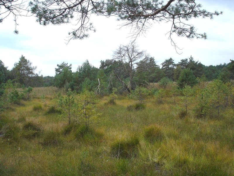 - Natürliche Eigenentwicklung von Moorwäldern und natürlich offenen Hoch- und Übergangsmooren: Große Teile des Projektgebietes können nach der Maßnahmenumsetzung der natürlichen Eigenentwicklung überlassen werden. Die auf den Flächen vorhandenen Gehölze werden langsam, auch ohne lenkende Eingriffe, absterben. Der Zustand der Flächen wird sich mit dem Anstieg des Wasserstandes im Gebiet immer mehr in Richtung des Entwicklungsziels verändern. Die Eigenentwicklung ist im Rahmen des Projektes trotzdem als separate Maßnahme gekennzeichnet, da hiermit Verwaltungstätigkeiten rechtlicher Art einhergehen müssen, die einen gewissen zeitlichen Aufwand erfordern. Es wird im Projektgebiet jedoch auch weiterhin erforderlich sein, in bestimmten Bereichen Pflegemaßnahmen durchzuführen.