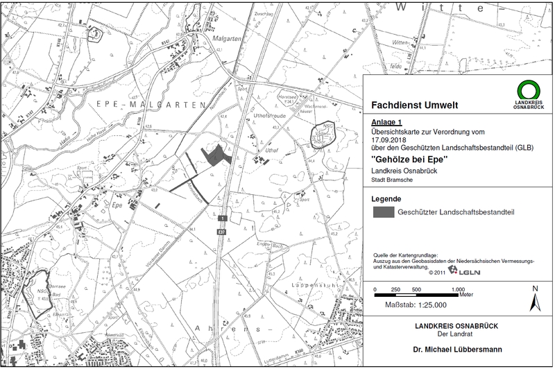 Zuständig ist der Landkreis Osnabrück als untere Naturschutzbehörde.