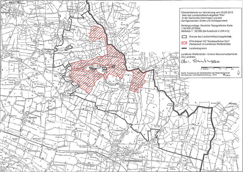 Die Naturschutzgebiete „Reitlingstal“ und „Kalksteinbruch und Halbtrockenrasen am Eichberg bei Hemkenrode“ liegen im Elm, werden aber durch diese Verordnung nicht erfasst.