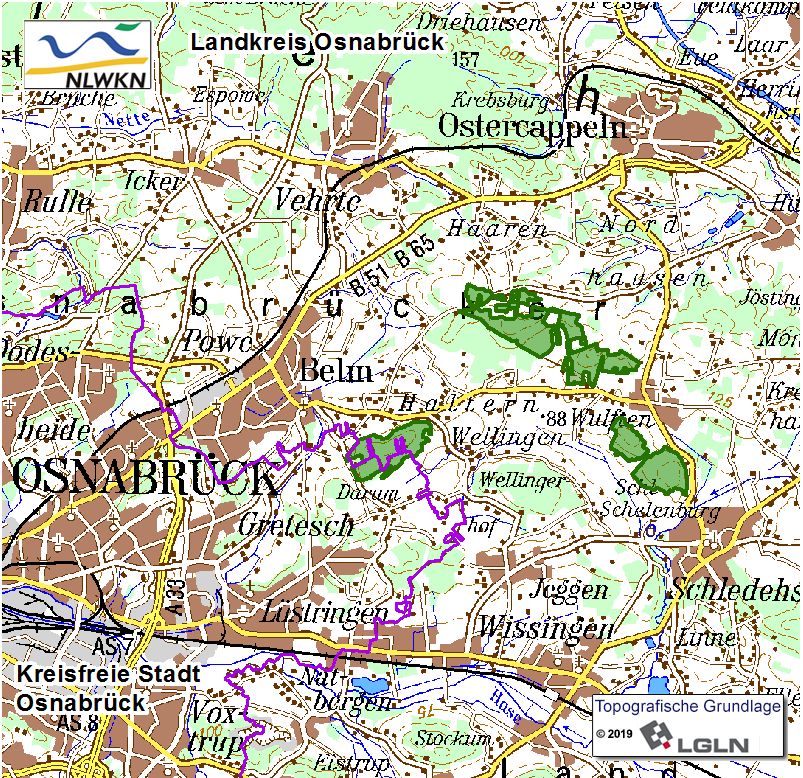 Zuständig sind der Landkreis Osnabrück sowie die Stadt Osnabrück als untere Naturschutzbehörde.