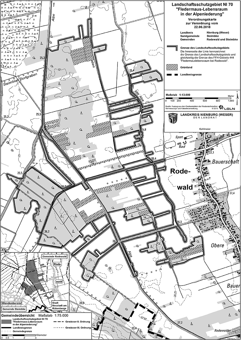 Das Gebiet dient dem Schutz des FFH-Gebietes 444 „Fledermauslebensraum bei Rodewald“.