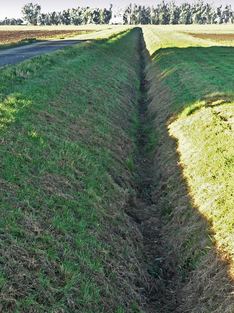 Die in ostwestlicher Ausrichtung verlaufenden Gräben werden regelmäßig von Wegen oder Grünlandstreifen begleitet. Sie sind unterschiedlich mit Röhrichten und Hochstaudenfluren bewachsen, diese bieten einen hervorragenden Lebensraum für eine Vielzahl an Tierarten. Die in nordsüdlicher Ausrichtung verlaufenden Verbindungsgräben werden regelmäßig von Baumhecken als Erosionsschutzstreifen begleitet. Zusammen haben die bewachsenen Gräben und die Baumhecken eine wichtige Funktion als biotopverbindendes Netz.