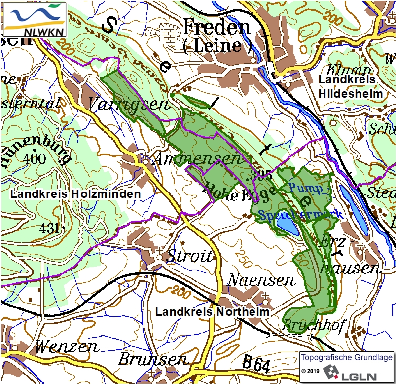 Zuständig sind die Landkreise Hildesheim, Holzminden und Northeim als untere Naturschutzbehörde.