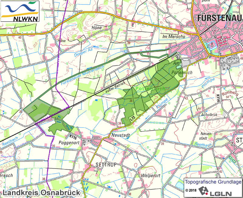 Das Gebiet setzt sich zum einen aus dem Waldgebiet Pottebruch zusammen, einem historisch alten Wuchsstandort von Wald westlich von Fürstenau, zum anderen aus dem Bruchwaldgebiet Poggenort in der Gemeinde Andervenne und der Stadt Fürstenau, das von landwirtschaftlich genutzten Flächen umgeben ist. Der dritte Teilbereich umfasst den Abschnitt des Fürstenauer Mühlenbaches einschließlich des Zulaufs Fürstenauer Graben ab westlich von Fürstenau bis nördlich des Bruchwaldgebietes Poggenort.