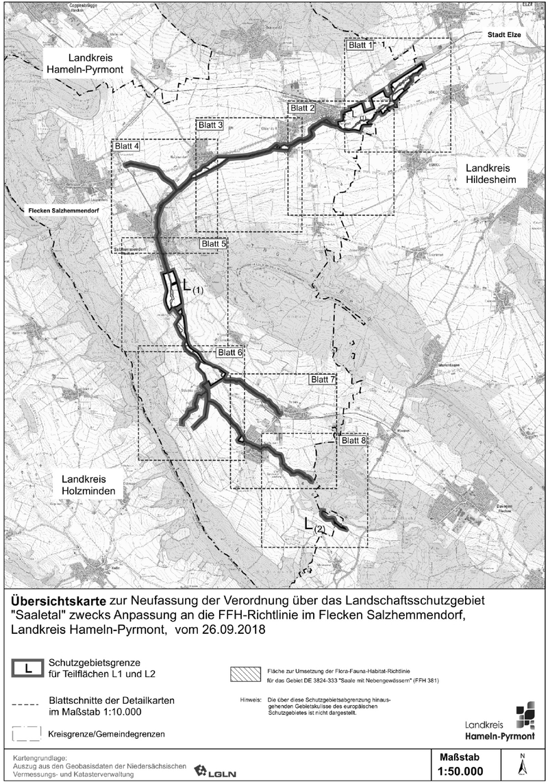 Das LSG "Saaletal" dient dem Schutz der Saale im Landkreis Hameln-Pyrmont. Ober- und Unterlauf der Saale im Landkreis Hildesheim werden duch das LSG HI 071 "Saale" geschützt.