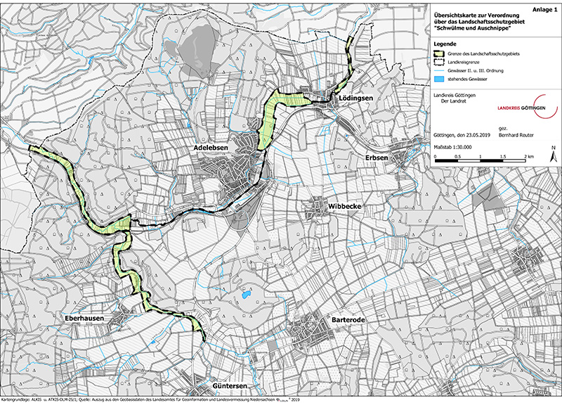 Verordnungsübersichtskarte des Landschaftsschutzgebietes "Schwülme und Auschnippe"   Bildrechte: Landkreis Göttingen