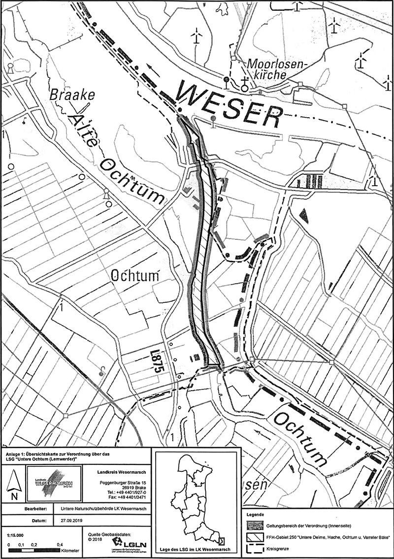 Zuständig ist der Landkreis Wesermarsch als untere Naturschutzbehörden.