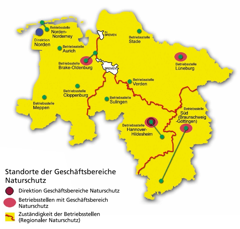 Hier finden Sie eine Übersicht der Geschäftsbereichs- und Aufgabenbereichsleitungen im NLWKN-Naturschutz (PDF nicht vollständig barrierefrei).