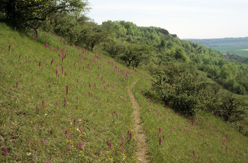 orchideenreicher Halbtrockenrasen auf Kalk, durchsetzt von Gebüschen trockenwarmer Standorte; Weper im Weser- und Leinebergland; A5.98; RHT.o / BTK [insgesamt FFH 6210, prioritäre Ausprägung]; Foto: O. v. Drachenfels
