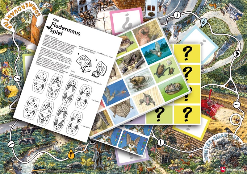Für 2 bis 8 SpielerInnen ab 10 Jahre. In diesem Spiel erlebst du, was einer Fledermaus so alles passieren kann auf ihren Flügen zwischen Winterquartier und Sommerquartier. Dabei lernst du ihr Leben in der Dunkelheit, ihre erstaunlichen Eigenschaften und ihre Lebensräume kennen. Vergriffen.
