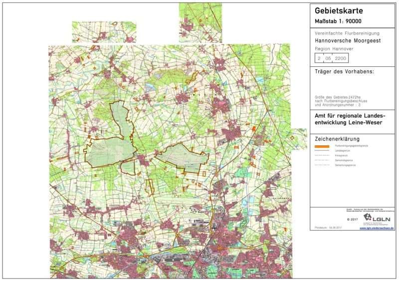 Mit der 3. Anordnung vom 04.05.2017 hat das ArL Leine-Weser als zuständige Flurbereinigungsbehörde ca. 200 ha potenzielle Tauschflächen zum Flurbereinigungsgebiet hinzugezogen. Die Flächen liegen in verschiedenen Gemarkungen rund um das LIFE+ Projektgebiet. Die Region Hannover, das Land Niedersachsen (NLWKN) und verschiedene Gemeinden bringen ihre Flächen im Umfang von ca. 100 ha kostenneutral in das Verfahren ein. Um den Darüber hinaus gehenden Bedarf an Tauschflächen abzudecken ist vorgesehen, dass das Land Niedersachsen (NLWKN) in Kürze private Waldflächen sowie Flächen der NLG (Acker, Grünland und Wald) im Umfang von ca. 100 ha für Tauschzwecke ankauft.