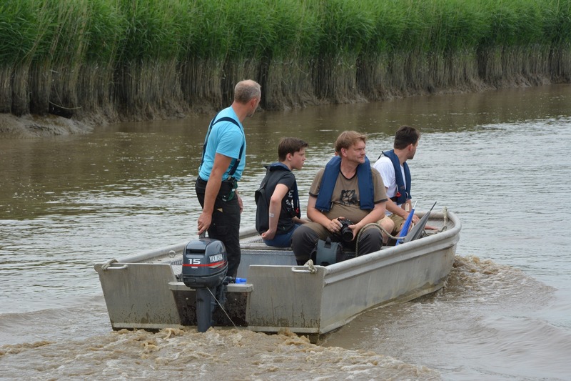 Am Donnerstag vergangener Woche führte Dr. Helmut Kruckenberg, im Emsgebiet tätiger Ornithologe, Beringungen in der Lachmöwenkolonie Bingumer Sand bei Leer durch. Kennzeichnungen dieser Art dienen Forschungszwecken und werden durch das Institut für Vogelforschung – Vogelwarte Helgoland – initiiert. Unterstützt wurde Kruckenberg durch die FachkollegInnen Marike Boekhoff und Sander Moonen, avifaunistisch interessierten Helfern sowie durch die Naturschutzstation Ems. Letztere hatte auch den Kontakt mit den Norder Kollegen vom Betriebshof Kanalpolder hergestellt, die sich freundlicherweise bereit erklärten, die Gruppe mit dem NLWKN-eigenen Boot überzusetzen.
