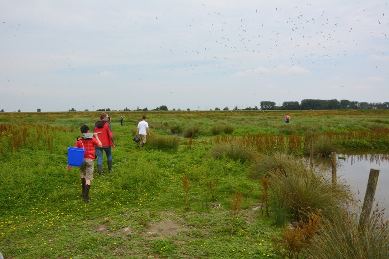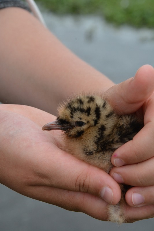 Bei schwülem Wetter und an die 30°C Lufttemperatur geriet das Unterfangen zu einer schweißtreibenden Angelegenheit. Die bereits herangewachsenen Jungvögel waren zwar noch nicht flügge, aber schon recht mobil und nicht immer leicht einzufangen. Nach ca. 2 Stunden, in denen rund 70 Lachmöwen einen Ring mit Kennzeichnung erhalten hatten, wurde die Insel wieder ver- und den gefiederten Bewohnern überlassen.
