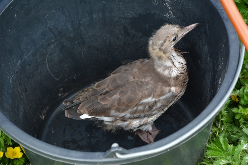 Seit diesem Montag nun scheint das Schicksal des „Benjamins“ gewiss: Ein weiß-graues Etwas, das bei der Nachsuche mit dem Fernglas auf dem Dach entdeckt wurde, entpuppte sich mit hoher Wahrscheinlichkeit als der Kadaver des Nachzüglers. Vermutlich war dieser nach mehreren Tagen ohne Fütterung zu schwach, um seinen Geschwistern noch folgen zu können…