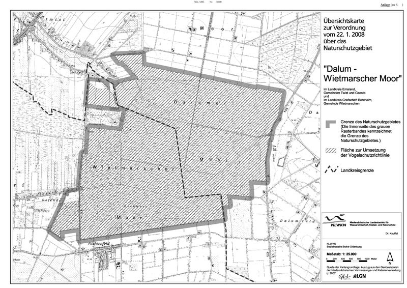 Amtliche Verordnungskarte zum Naturschutzgebiet "Dalum-Wietmarscher Moor"