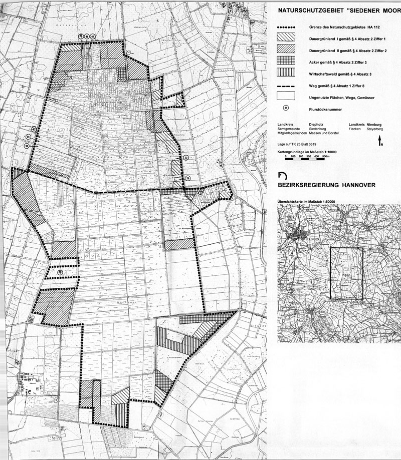 Amtliche Verordnungskarte zum Naturschutzgebiet "Siedener Moor"