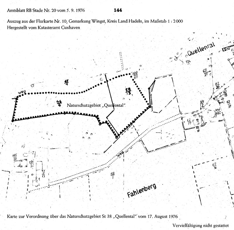 Amtliche Verordnungskarte zum Naturschutzgebiet "Quellental"