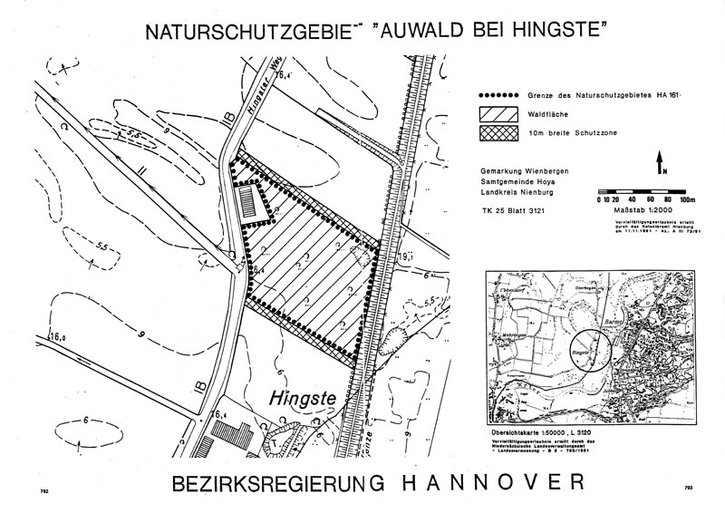 Amtliche Verordnungskarte zum Naturschutzgebiet "Auwald bei Hingste"