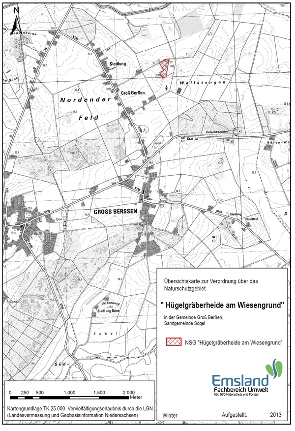 Amtliche Verordnungskarte zum Naturschutzgebiet "Hügelgräberheide am Wiesengrund"