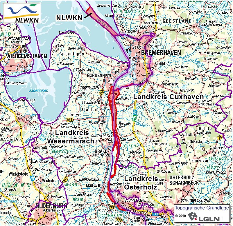 Zuständig sind die Landkreise Cuxhaven, Osterholz und Wesermarsch sowie der NLWKN als untere Naturschutzbehörden.