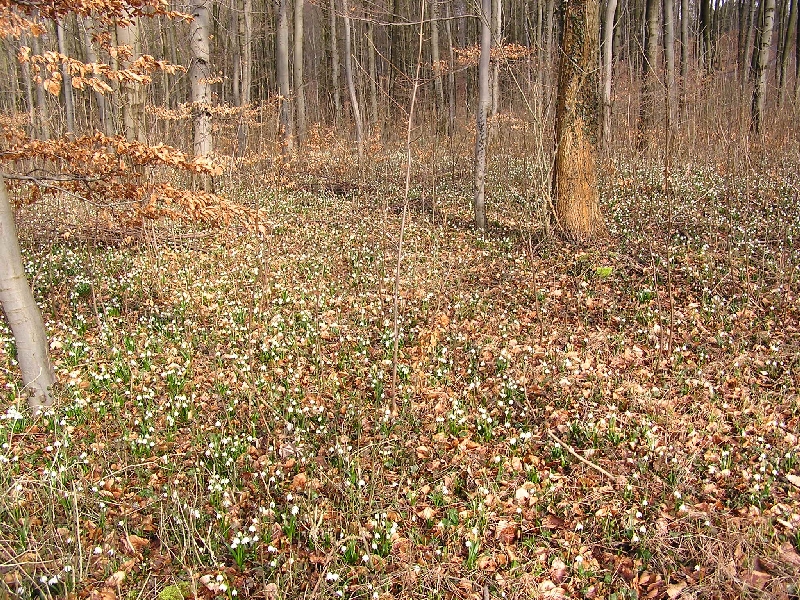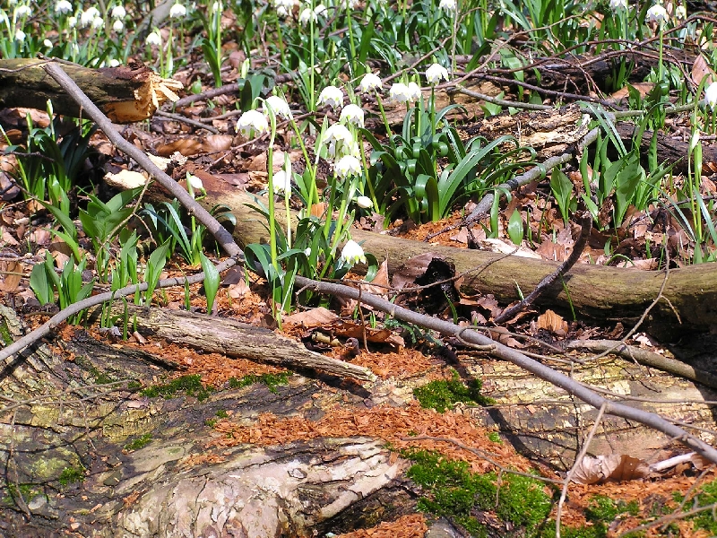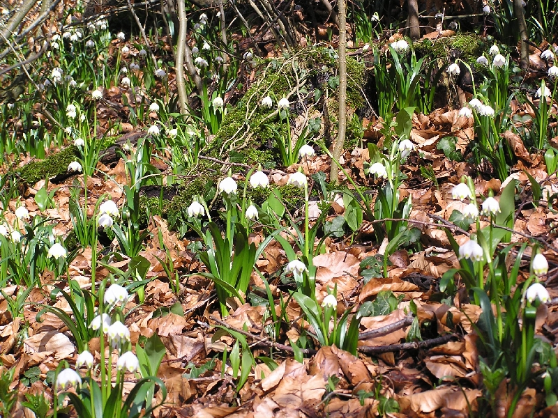 Charakteristisch sind im Frühjahr die zahlreichen Märzenbecher, die dort gehäuft vorkommen aufgrund des Kalkbodens, des speziellen Kleinklimas und des Schutzes durch die mittelalten Buchen (60-80 Jahre). Dieser Blütenteppich erstreckt sich auf einer Fläche von 1,2 km Länge und 300 m Breite und ist für die Gegend des Weserberglandes einmalig.