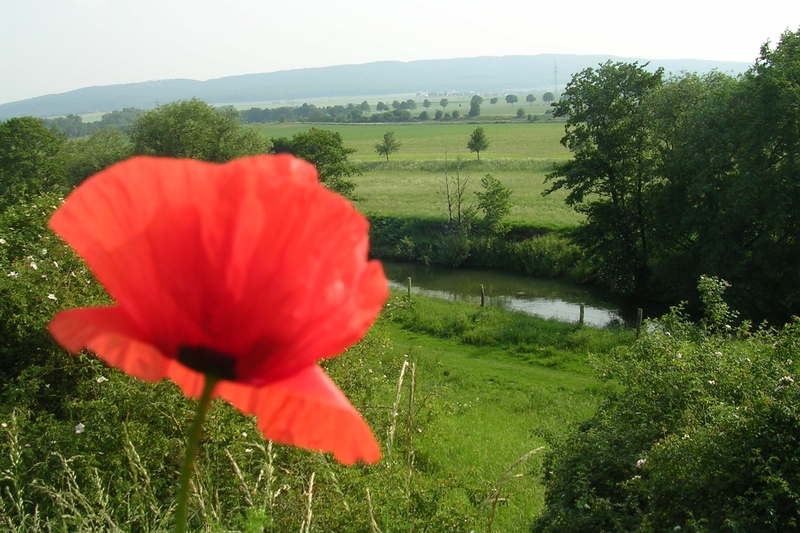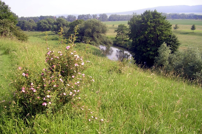 Von der markanten Talkante des Roten Steines bieten sich einmalige Blickbeziehungen, die über das Innerstetal mit seiner spätmittelalterlichen ehemaligen Wasserburg und das Marienburger Hügelland bis weit zum Hildesheimer Wald reichen.