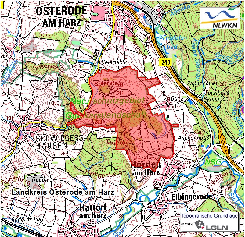 Das NSG dient dem Schutz des FFH-Gebietes 133 "Gipskarstgebiet bei Osterode". Im Nordwesten grenzt das NSG BR 122 "Gipskarstlandschaft bei Ührde" an.