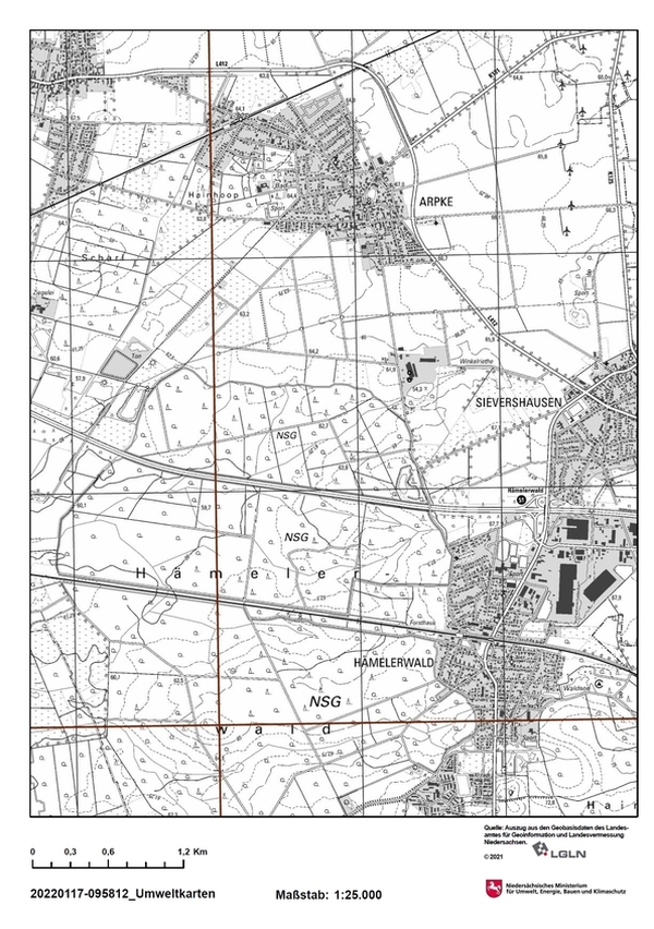 Sollten Sie das digitale Programm nicht nutzen können, können Sie die benötigten Karten direkt aus den "Umweltkarten Niedersachsen" erstellen, als PDF abspeichern und ggf. ausdrucken. Dabei sind Kartenausschnitt, Maßstab und zusätzlicher fachlicher Inhalt individuell auswählbar.