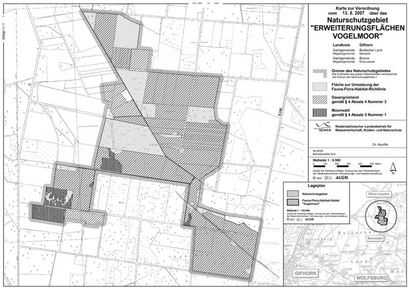 Amtliche Verordnungskarte zum Naturschutzgebiet "Erweiterungsflächen Vogelmoor"