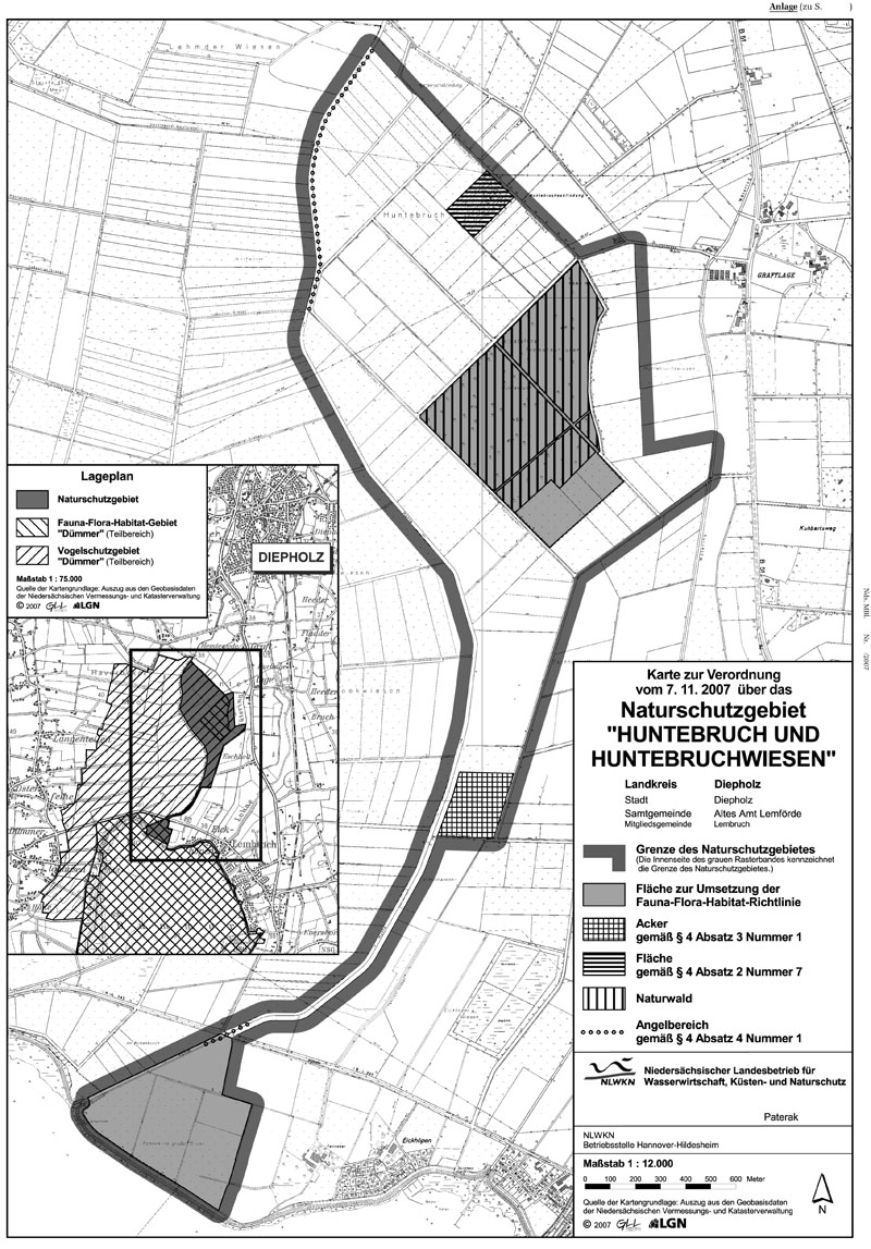 Amtliche Verordnungskarte zum Naturschutzgebiet "Huntebruch und Huntebruchwiesen"
