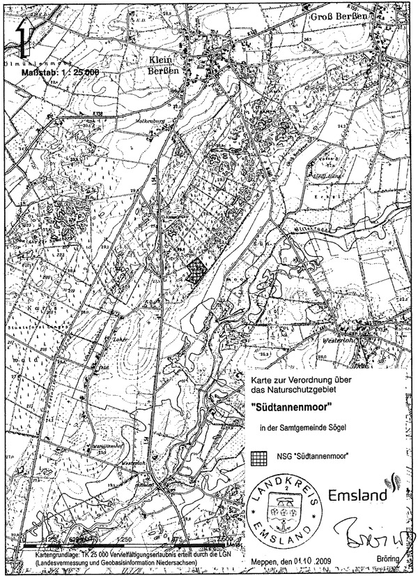Amtliche Verordnungskarte zum Naturschutzgebiet "Südtannenmoor"