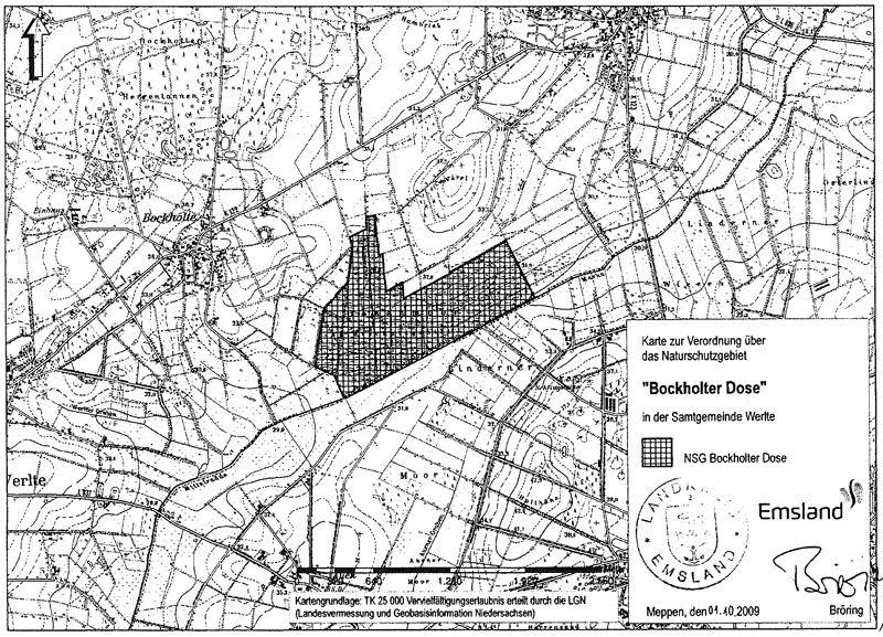 Amtliche Verordnungskarte zum Naturschutzgebiet "Bockholter Dose"