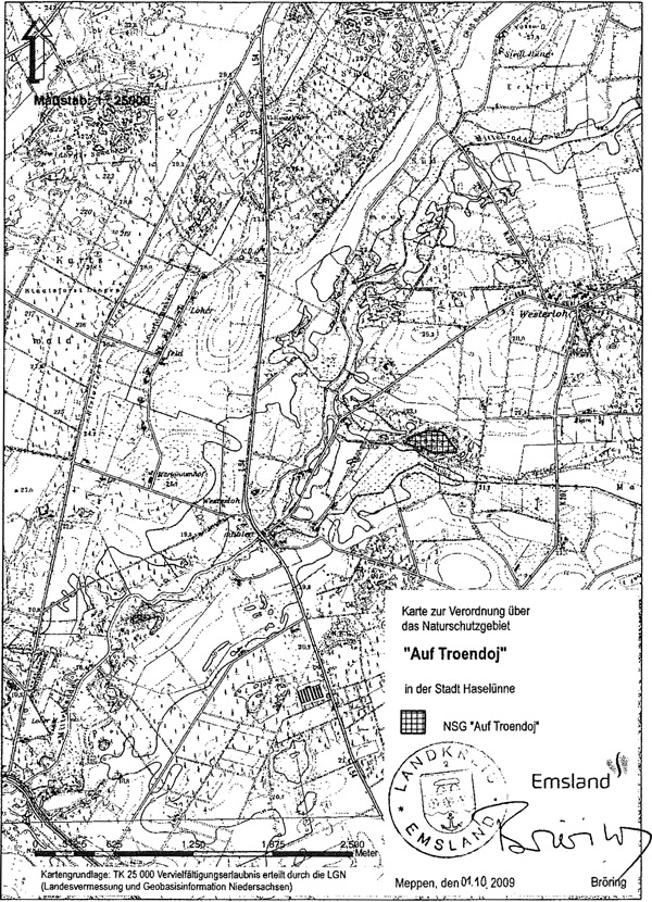 Amtliche Verordnungskarte zum Naturschutzgebiet "Auf Troedoj"