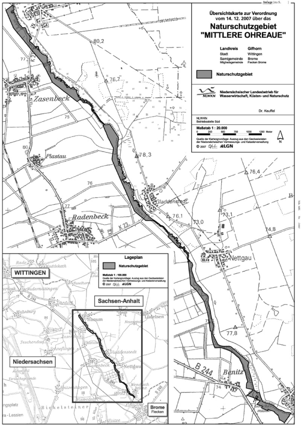 Amtliche Verordnungskarte zum Naturschutzgebiet "Mittlere Ohreaue"