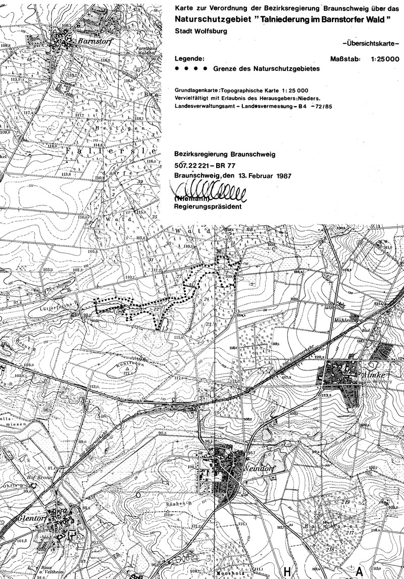 Amtliche Verordnungskarte zum Naturschutzgebiet "Talniederung im Barnstorfer Wald"