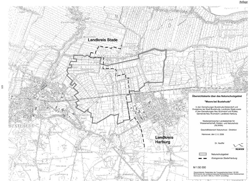 Amtliche Verordnungskarte zum Naturschutzgebiet "Moore bei Buxtehude"