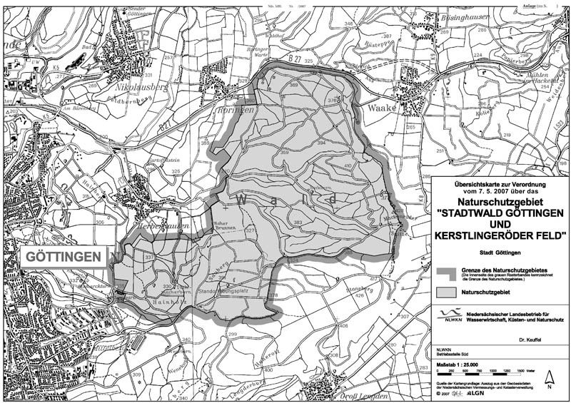 Amtliche Verordnungskarte zum Naturschutzgebiet "Stadtwald Göttingen und Kerstlingeröder Feld"