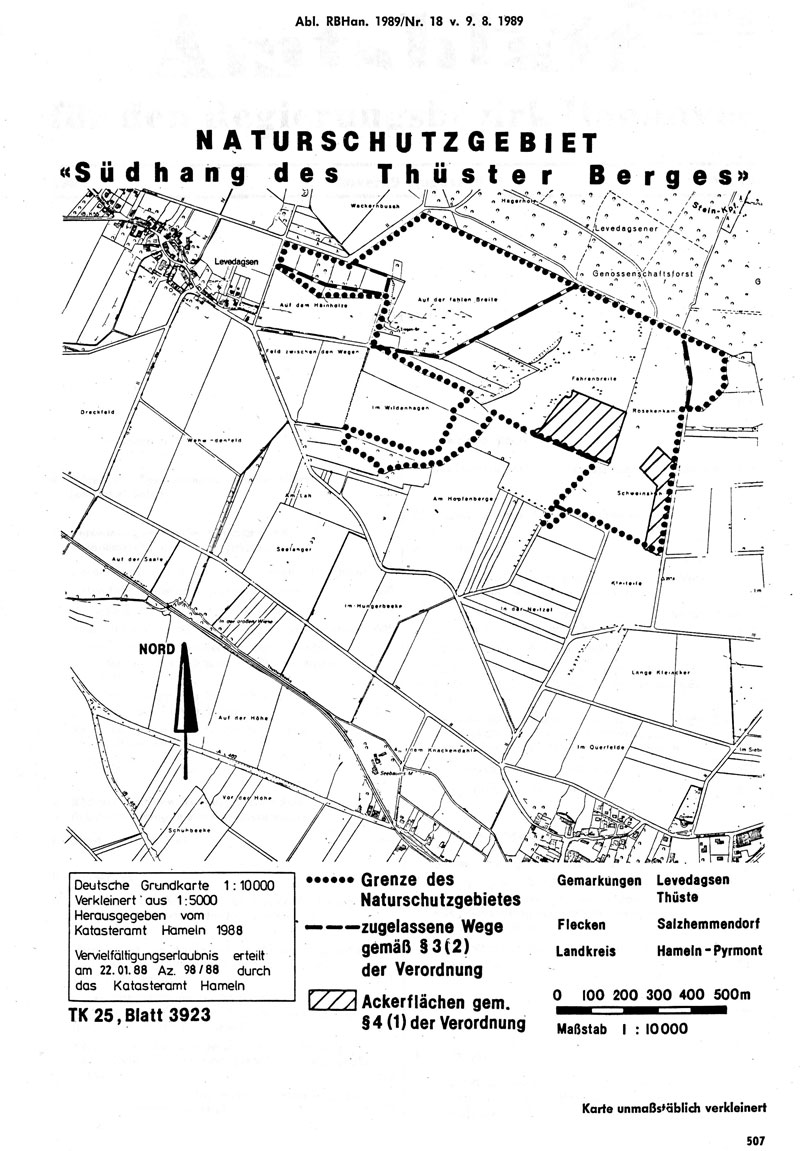 Amtliche Verordnungskarte zum Naturschutzgebiet "Südhang des Thüster Berges"