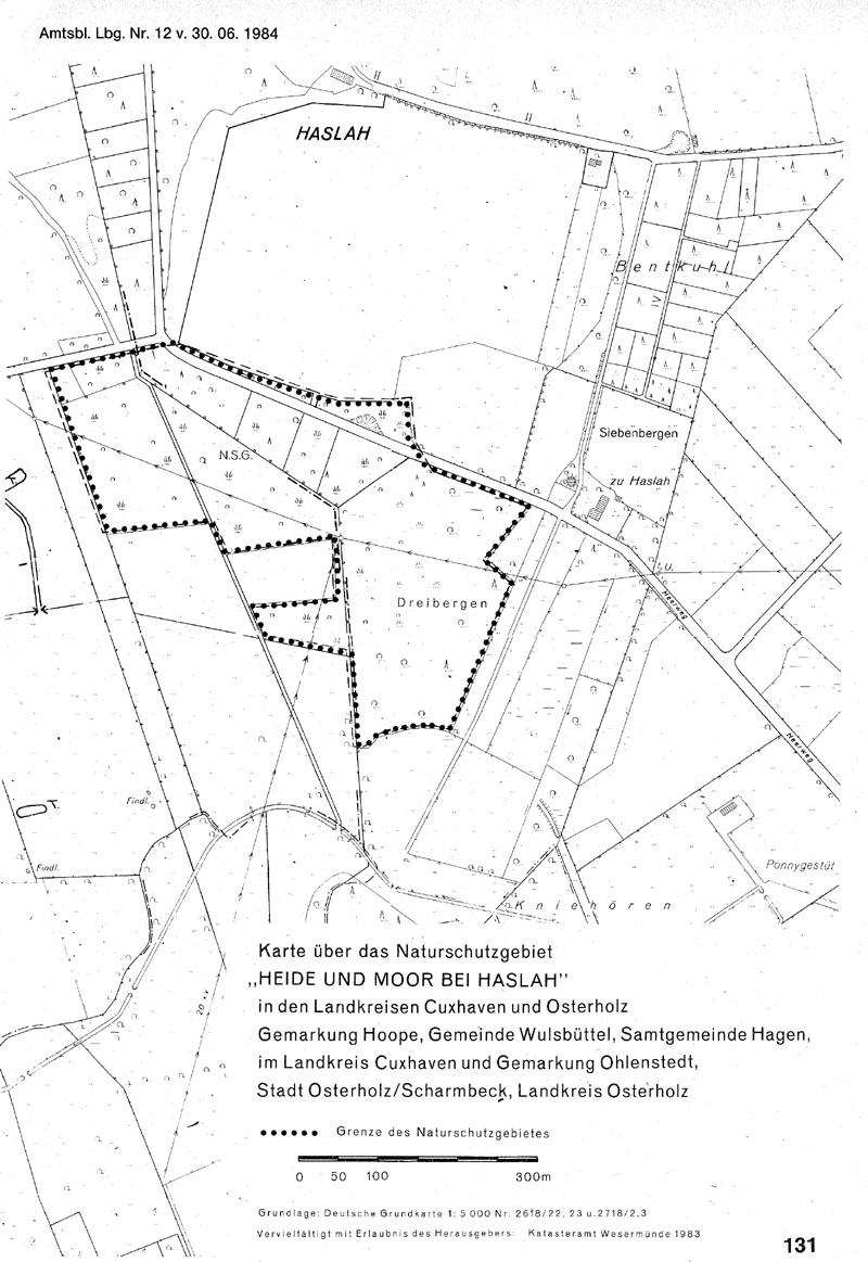 Amtliche Verordnungskarte zum Naturschutzgebiet "Heide und Moor bei Haslah"